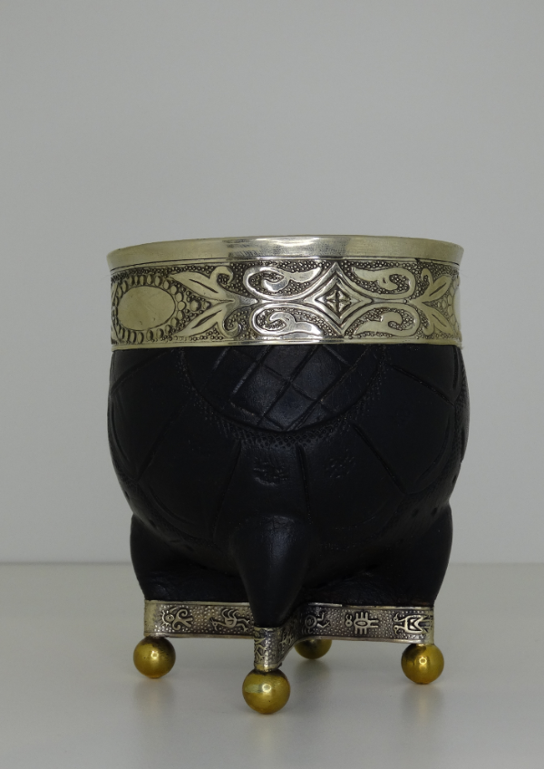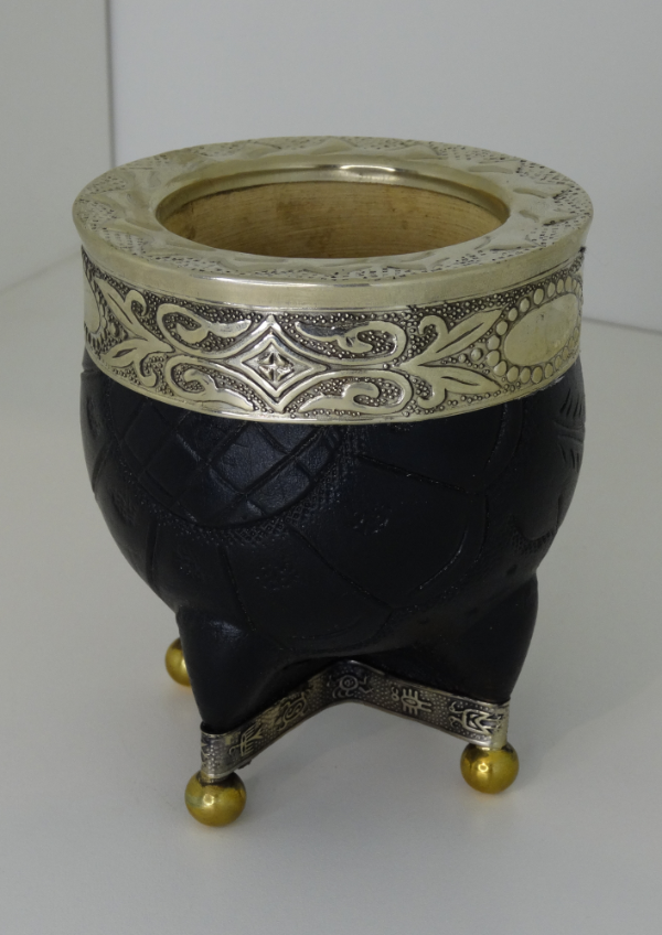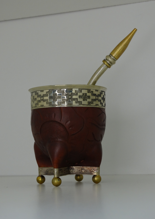 El mate imperial premium con virola de alpaca cincelada, cuero repujado y patitas de bronce es el más exclusivo y lujoso del mercado. Pensado para quienes buscan la máxima calidad y distinción en sus momentos materos, este mate reúne detalles incomparables. La virola de alpaca cincelada refleja una labor artesanal de excelencia, mientras que el cuero repujado aporta una textura única que combina tradición y estilo. Sus patitas de bronce no solo brindan estabilidad, sino que elevan su elegancia a otro nivel. Si querés destacar y disfrutar de un mate que es una verdadera obra de arte, este es sin dudas tu mate.